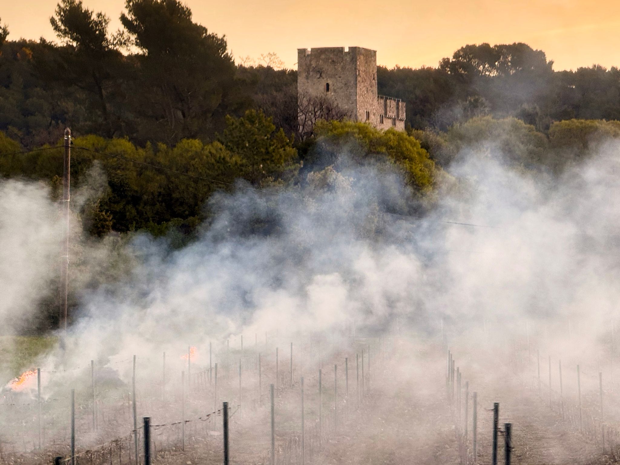 We had three route possibilities. Jenn wanted to do the hardest one, so we did. We rolled out of Le Thoronet in the shadow of its tacky blinking sign and into the darkness of Provence. The sun rose as we descended into the misty vineyards of Figanieres. Nope. Not mist. Burn piles on a calm morning filled the valley with suffocating smoke. I could still smell it on me halfway through the day as we climbed through the Les Gorges du Verdon. Our planned route was closed by a landslide, but the north traverse of the gorge was open, and busy. I was a bit concerned before lunch: we were barely on schedule. But as Jenn later pointed out, half of the climbing was in the first third of the day, and we recouped the deficit rapidly, getting to dinner well before the restaurants started serving. Oh well, we grabbed some crêpes, scarfed cold pizza, and made the 10-mile familiar climb out of Luberon and toward home. The Trace Velocio, unlike the Fleche Velocio, has no idle restrictions, so we had plenty of time for sleep after descending the south side of the Gorges de la Nesque at sunset and rolling into Caromb as the light faded. Our trace, like that of all the other trace and fleche teams, ended in Sault, at the traditional Paque-en-Provence gathering of randonneurs. Tomorrow, we'll pack up and head to Colorado. Looking forward to this year's RMCC fleche!